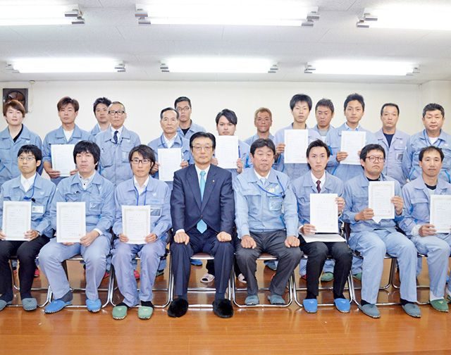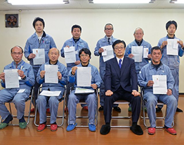 当社では、社業に貢献した方と社員の模範になった方を、毎年表彰しています。